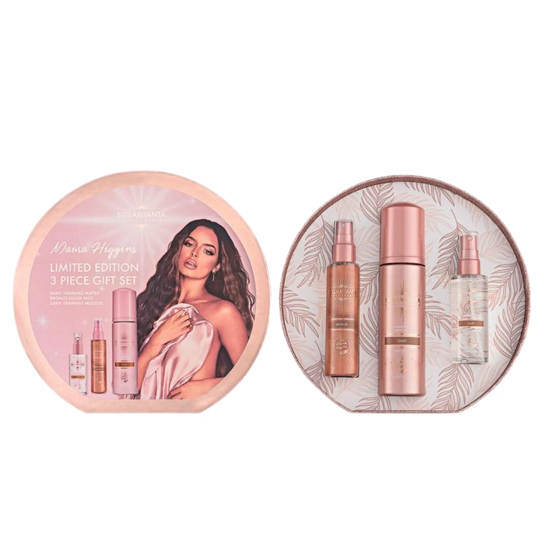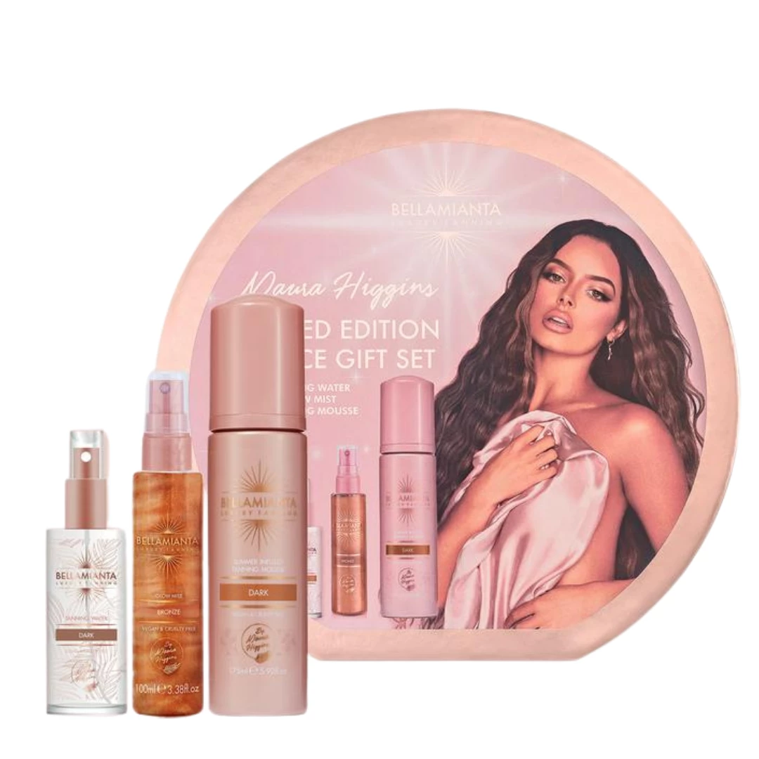 Look like Maura Higgins this Christmas. The Bellamianta By Maura Higgins Limited Edition 3 piece gift set has everything you need to get that infamous love island glow. The perfect trio, this luxury tanning mousse, face tanning water and glow mist allows you to bronze from head to toe before glowing like a star. Best described as summer in a bottle, our tanning mousse is bursting with skin-loving ingredients including hyaluronic acid and a cocktail of superfruits. The next step in your tanning routine is your face. There’s no better way to get that natural, sunkissed faux glow than with our coconut scented must-have tanning water. Now you’re bronzed to perfection, it’s time to glow! The Glow Mist is the perfect addition to any tan to give you a luxurious shimmering finish that will create the ultimate sunkissed look on both clean skin or over your makeup to give you that show-stopping dewy finish.