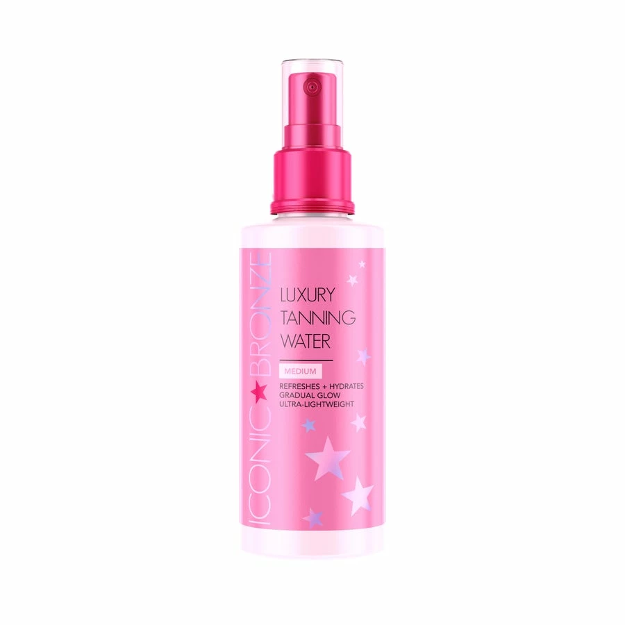 A golden glow can be yours all year round with the Iconic Bronze Luxury Water, available in the shades Medium and Dark. The vitamin-enriched Tanning Water refreshes and hydrates while creating a beautifully healthy glow, laying down a weightless bronze canvas without drying out the skin. Transparent in colour, the versatile formula lends itself to the face and body. It features a convenient spray applicator that mists across the skin, enriched with expert ingredients for a quenching treat.