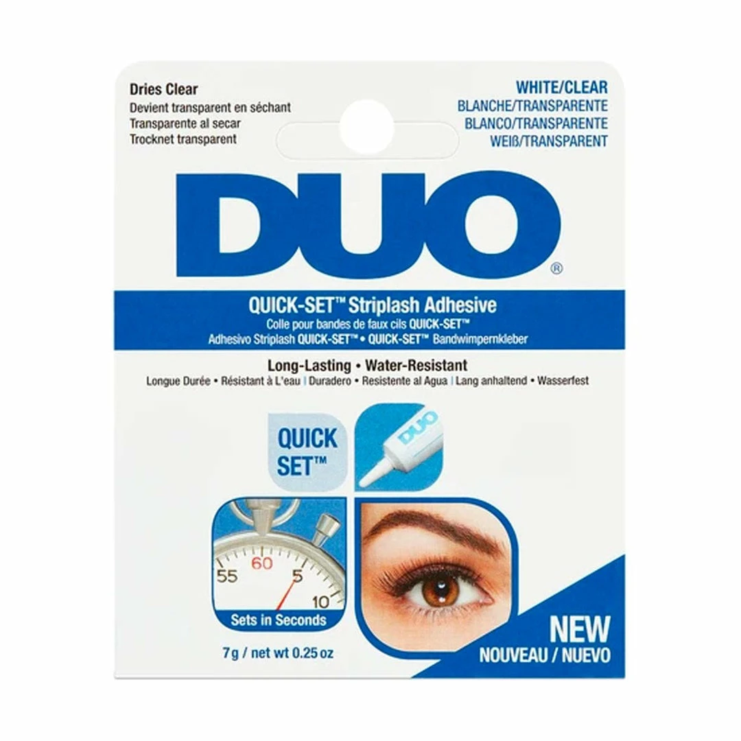 Duo Quick-Set Striplash Adhesive is a fast setting, water resistant Striplash adhesive, it sets in seconds. No more waiting for the adhesive to get tacky before lash application.