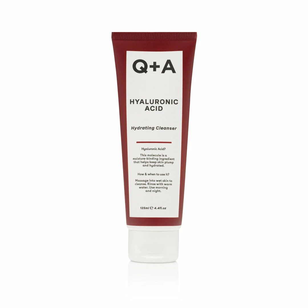 Hyaluronic Acid is a super hydrator. Don’t let the word “acid” scare you; we produce it naturally in our own bodies too! Q+As Hyaluronic Acid Hydrating Cleanser uses gentle and smoothing cleansing agents which only boost your skin’s moisturisation, rather than feeling dry and tightening!
