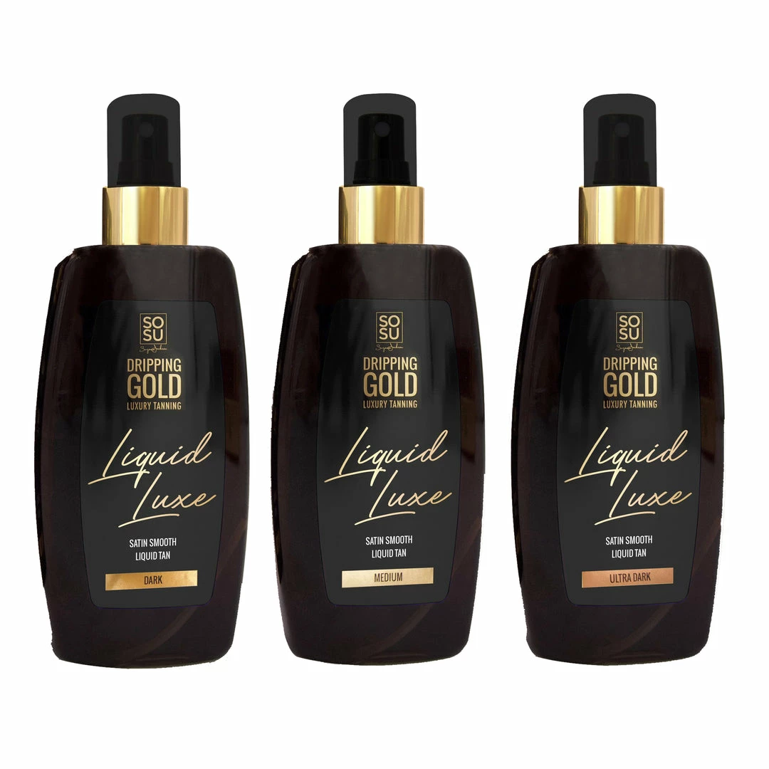 A game-changer for the most passionate of tan-lovers, the Liquid Luxe tan comes in 3 rich bronze shades. This is a luxuriously silky liquid formula that glides onto the skin like a dream, to deliver next level bronzed results! Application is effortless thanks to the gorgeous bronze colour guide, and the liquid melts into the skin like satin, enhanced especially when applied with a Luxury Velvet Tanning Mitt. Its tropical scent and quick drying elements mean that it is ready to wear in an instant, while also developing a long-lasting airbrush-effect tanned glow within 4-6 hours that looks oh so natural and deliciously deep!