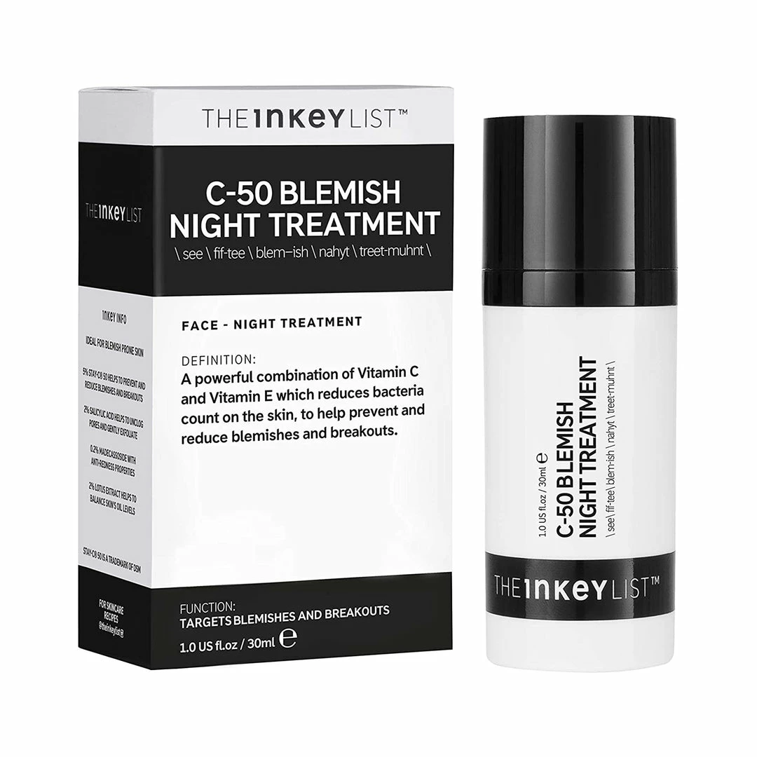 The Inkey List’s C-50 Blemish Night Treatment is an overnight mask that minimises existing and prevents potential breakouts. C-50 is a stable vitamin C derivative that brightens and evens your tone so that blemishes appear diminished, while simultaneously encouraging the renewal of your cells for quicker healing times. The BHA salicylic acid exfoliates your skin, clearing away dead skin so it won’t clog your pores and develop into blemishes. Regulating your skin’s oil production, evening your tone and targeting the type of bacteria that causes blemishes to appear, the C-50 Blemish Night Treatment is a definite must-have for blemish-prone or oily skin types.